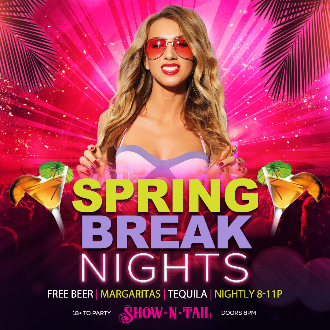 Events | Featured | Specials SPRING BREAK 2026 By Kristin Rae Posted on February 27, 2026March 8, 2026 Last updatedMarch 8, 2026 SPRING BREAK NIGHTS FREE BEER, MARGARITAS, & TEQUILA NIGHTLY 8-11PM. 18+ TO PARTY! Share on